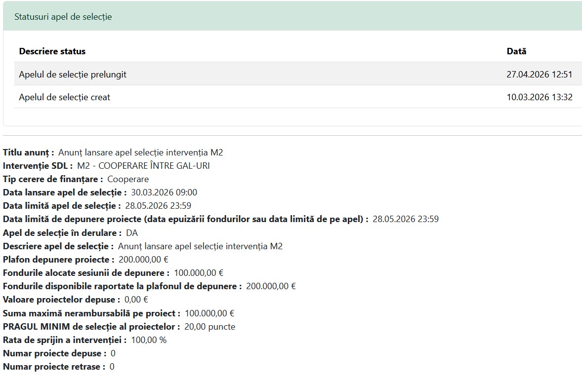 Prelungire apel de selecție nr. 1/6/2026 – Intervenția M2 – Cooperare între GAL-uri
